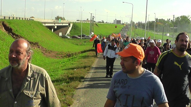 Lunes 18 de Mayo de 2015 | La contundente y masiva movilización pacífica de más de mil obreros aceiteros desde distintos puntos del territorio nacional hacia el polo agroexportador de San Lorenzo realizada desde las 5 horas de la mañana de hoy, en el día 14 de la gran huelga nacional aceitera, demostró la fuerza de la acción sindical. En la audiencia, iniciada a las 16 en el Ministerio de Trabajo, Empleo y Seguridad Social de la Nación, que se prolongó por más de cuatro horas, se abrió un canal de diálogo con las cámaras patronales. La cartera laboral fijó audiencia para el jueves próximo. Los compañeros obreros culminaron la movilización a las 21, luego de cumplir una histórica jornada en la que por más de de 16 horas sostuvieron tres cortes en los accesos a algunas de las principales empresas del sector, se volanteó y dialogó con los compañeros obreros aceiteros de San Lorenzo, y se realizó un acto central en la intersección de la A012 y la ruta 11 a las 10, con la participación de hermanas organizaciones sindicales, sociales y políticas que se solidarizaron con nuestra lucha por un Salario Mínimo, Vital y Móvil según su definición legal. Continúa el paro por tiempo indeterminado.