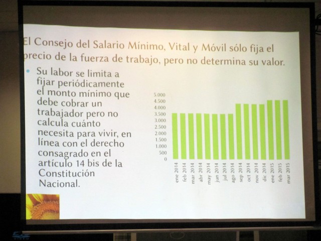Posteriormente a la presentación del informe preparado por los asesores económicos de nuestra Federación y el debate abierto entre los compañeros presentes, el Plenario aprobó la metodología que será utilizada en la próxima paritaria que vence el 31 de marzo de 2015, basada en el fundamento del salario mínimo vital y móvil de acuerdo a su definición legal en el artículo 14 bis de la Constitución Nacional y artículo 116 de la Ley de Contrato de Trabajo: “la menor remuneración que debe percibir en efectivo el trabajador sin cargas de familia, en su jornada legal de trabajo, de modo que le asegure alimentación adecuada, vivienda digna, educación, vestuario, asistencia sanitaria, transporte y esparcimiento, vacaciones y previsión”. Los delegados expresaron a viva voz su compromiso con la defensa del salario mínimo y vital.
